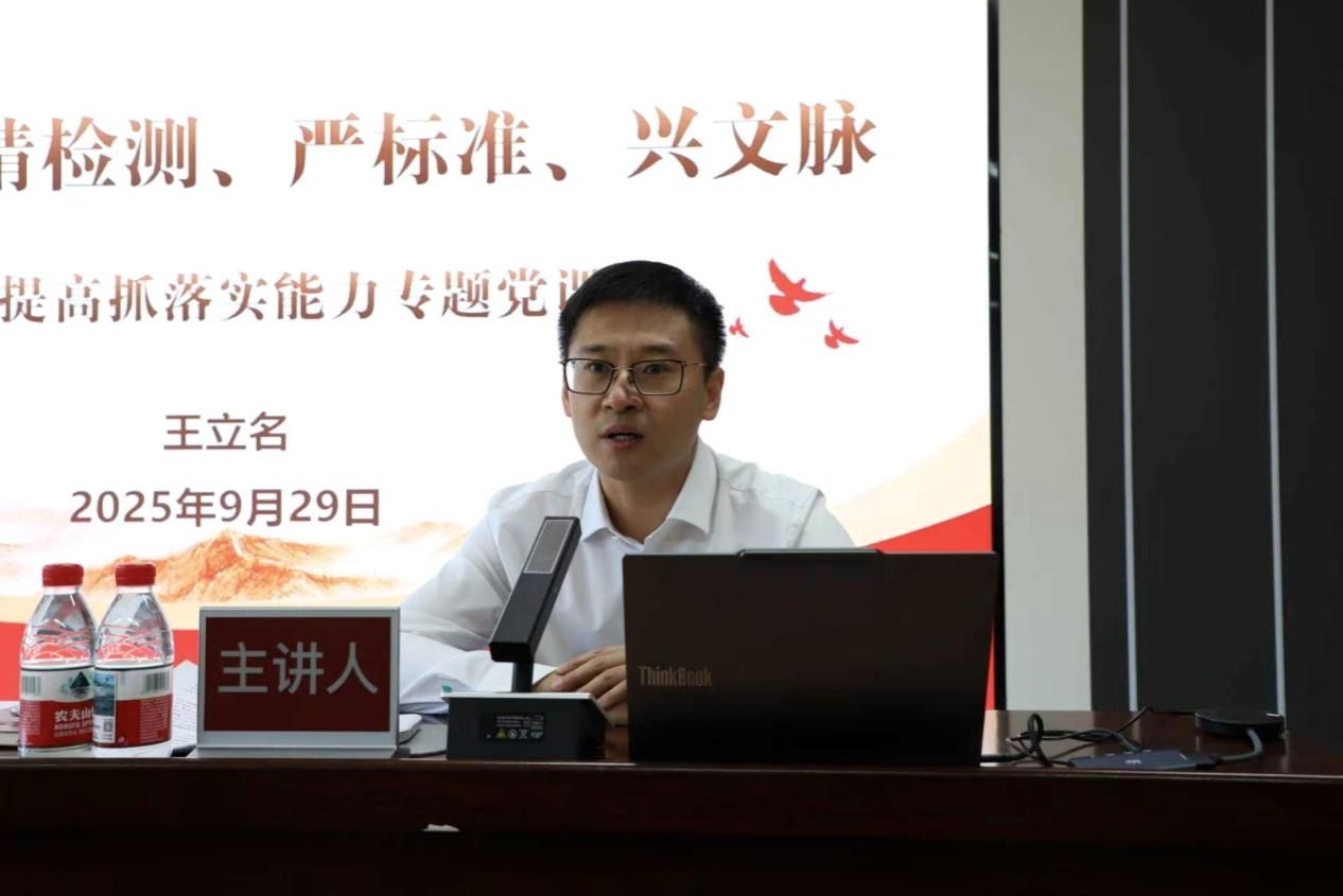 本次专题党课由公司书记、执行董事、总经理王立名担任主讲。党课紧扣党的 “全心全意为人民服务” 根本宗旨,明确企业践行该宗旨,需在提升落实能力基础上做好本职工作,并围绕公司 “强认证、精检测、严标准、兴文脉” 四大核心业务,提出 “抓落实” 是实现发展目标的重要途径。