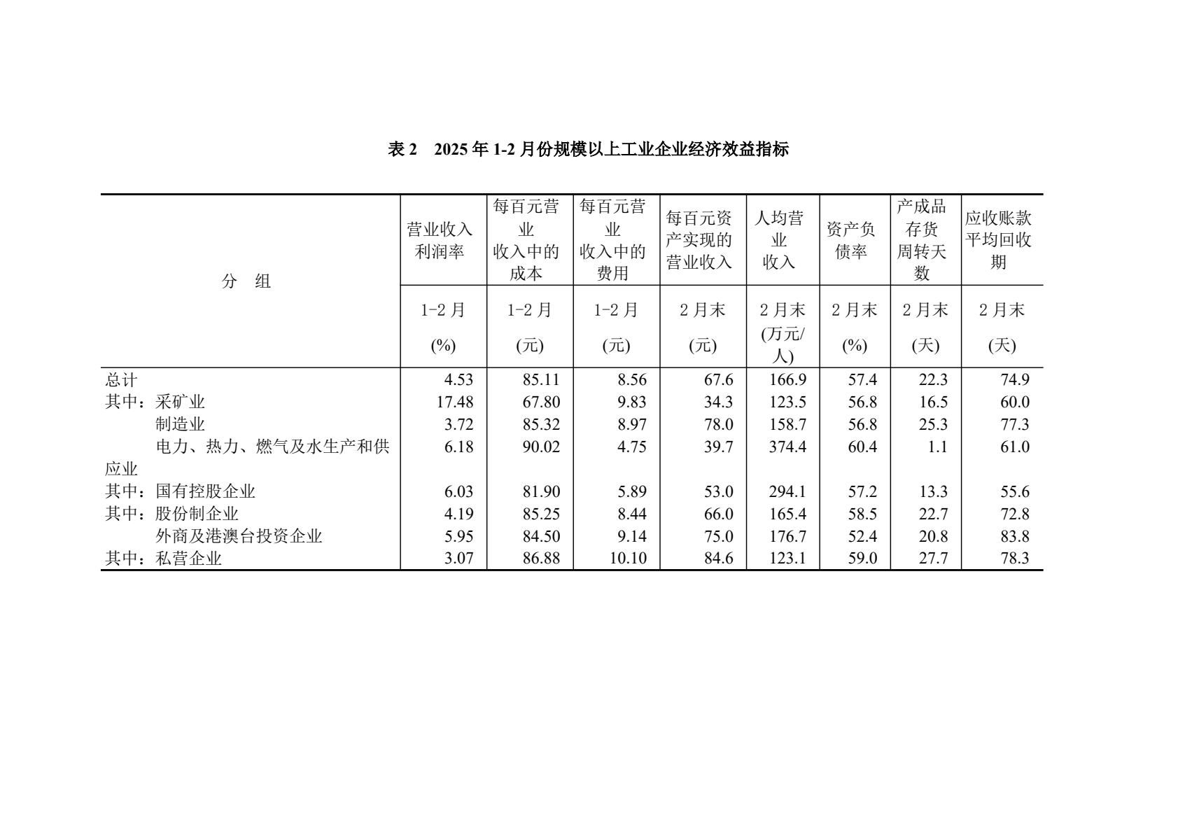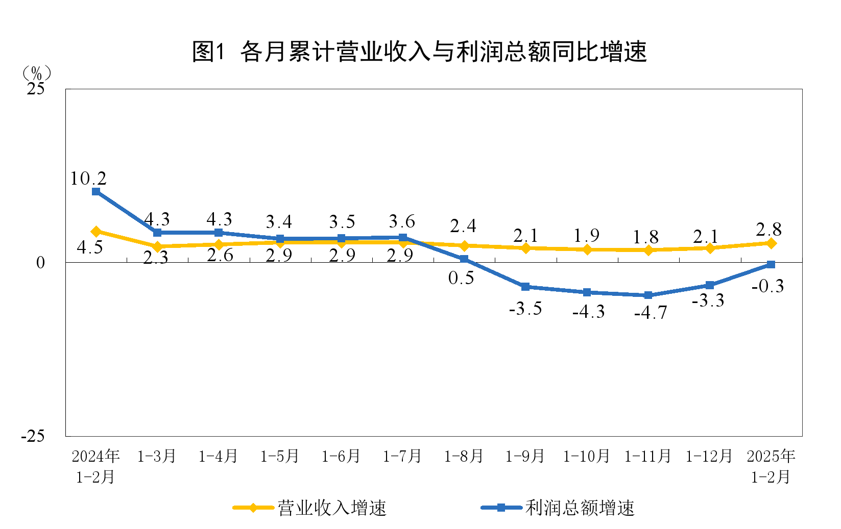 2025年1—2月份全国规模以上工业企业利润下降0.3%