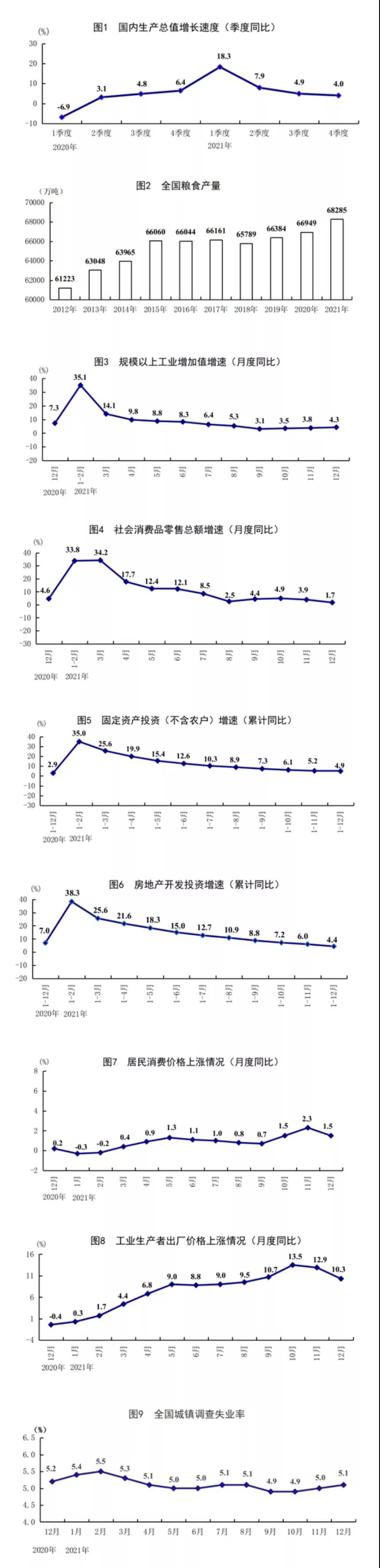 总的来看,2021年我国经济持续稳定恢复,经济发展和疫情防控保持全球领先地位,主要指标实现预期目标。同时也要看到,外部环境更趋复杂严峻和不确定,国内经济面临需求收缩、供给冲击、预期转弱三重压力。下阶段,要坚持以习近平新时代中国特色社会主义思想为指导,全面贯彻落实党的十九大和十九届历次全会精神,认真贯彻中央经济工作会议精神,坚持稳中求进工作总基调,完整、准确、全面贯彻新发展理念,加快构建新发展格局,推动高质量发展,科学统筹疫情防控和经济社会发展,继续做好“六稳”“六保”工作,着力稳定宏观经济大盘,保持经济运行在合理区间,保持社会大局稳定,以实际行动迎接党的二十大胜利召开。