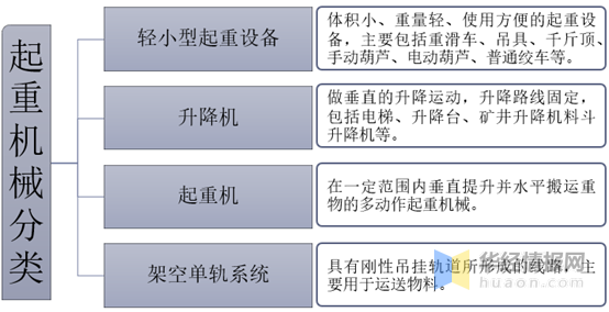 起重机械是应用广泛的机械设备,涵盖制造业多个方面。按照机械的结构划分,起重机械可划分为轻小型起重设备、升降机、起重机、架空单轨系统四类。其中,轻小型起重设备较为便携,适用于工作强度要求不高的场合。升降机是一种行程垂直的起重机械,其升降路线较固定。起重机是指在一定范围内垂直提升并水平搬运物料的多动作起重机械。架空单轨系统是指起重小车沿着由吊挂单轨组成的复合线路运行的起重机械。