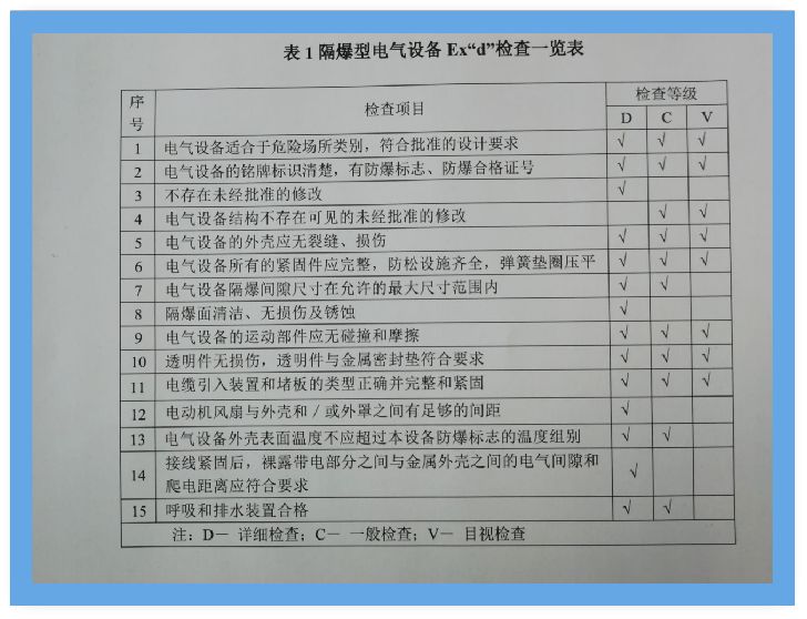 依据AQ 3009-2007和相关标准的规定,爆炸危险区域内防爆电气设备检查工作步骤主要包括现场踏勘、制定检查方法、技术文件审查、现场检查、检查报告编制五部分内容。
