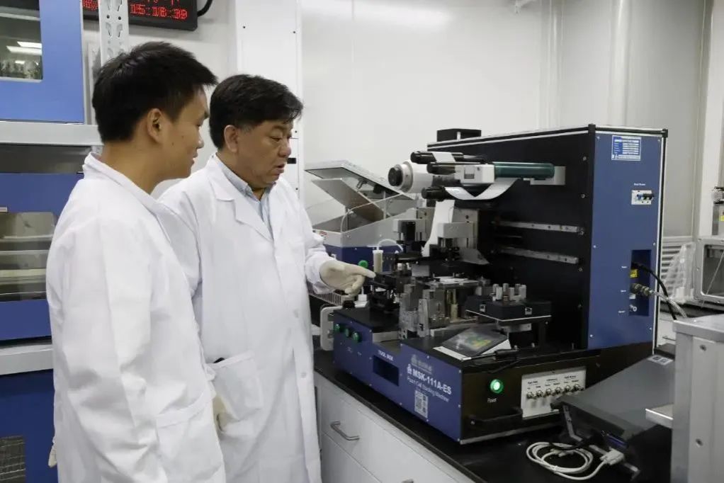 ▲科研团队正在研究电池叠片技术。(受访者供图)