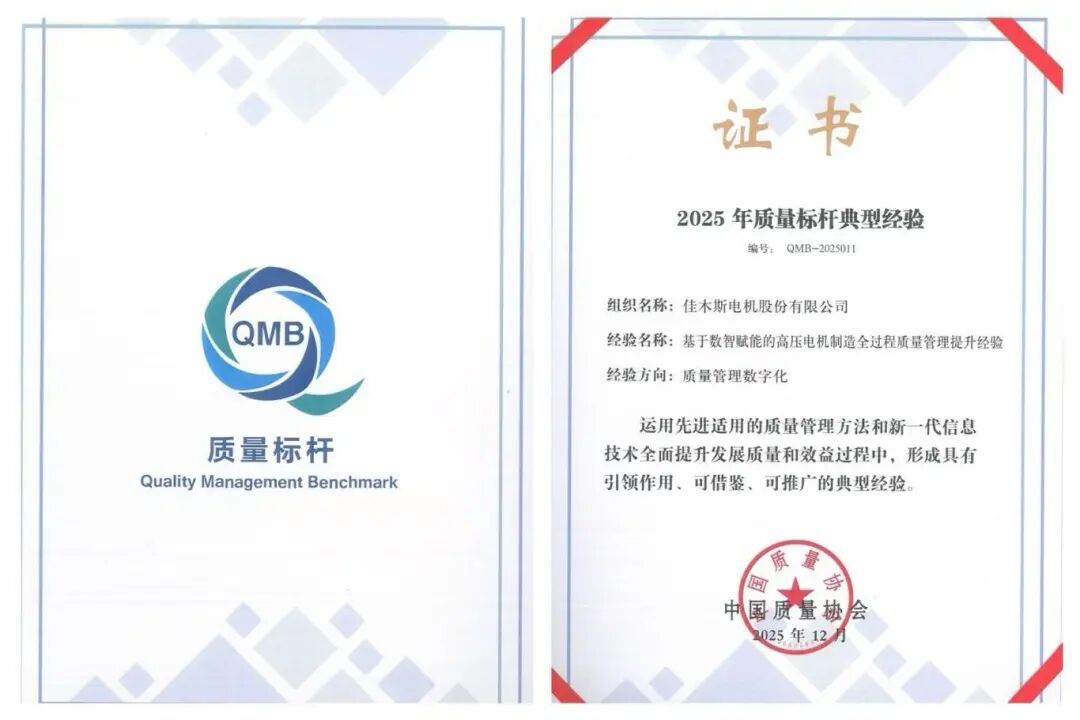 数智赋能铸精品,质量标杆领前行。此次入选既是对佳电股份技术实力与行业地位的权威认证,更是推动高质量发展的全新起点。未来,佳电股份将以质量标杆为基石,持续深化全链路数字化治理,推动质量管理从“被动管控”向“预见性价值创造”跨越,为建设“质量强国”注入坚实的佳电力量。