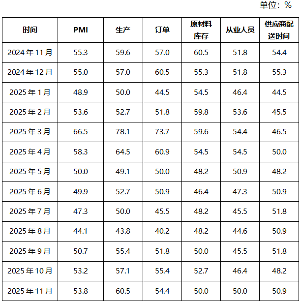 2025年11月中小型电机行业采购经理指数
