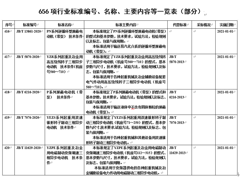 工业和信息化部批准《基于LTE的车联网无线通信技术 基站设备测试方法》等656项行业标准(标准编号、名称、主要内容及实施日期见附件1),其中通信行业标准134项、电子行业标准6项、化工行业标准43项、冶金行业标准16项、有色金属行业标准29项、建材行业标准13项、机械行业标准319项、制药装备行业标准4项、船舶行业标准10项、轻工行业标准37项、纺织行业标准45项;批准《铝合金6061铸态光谱单点标准样品》等2项有色金属行业标准样品(标准样品目录见附件2),现予公布。标准样品自公布之日起实施。
